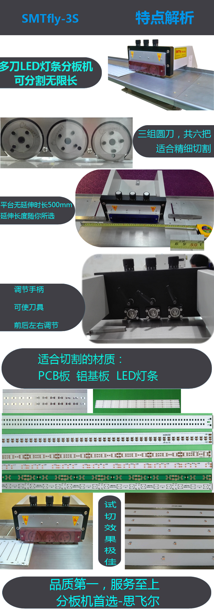 ●本機器采用獨特的單V槽連多切割方法,電路板切割由3組刀片完成,上下兩片為一組,構(gòu)成一個切割單元組